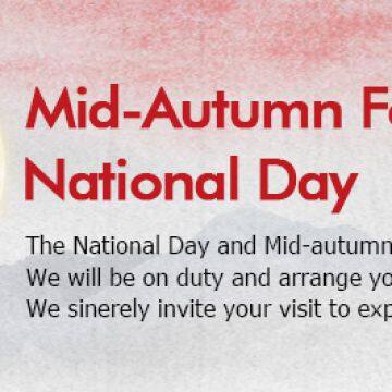 September 28, 2017The National Day and Mid-autumn festival holidays are from 1st Octomber to 8th Octomber.We will be on duty and arrange your inquir