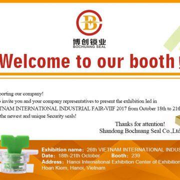 Shandong Bochuang Seal Co., Ltd. is located in Dezhou City, Shandong Province, China, and is one of well-known brand in high security seals field.Our many products have passed ISO9001, ISO/PAS 17712 certificated, and C-TPAT Certification. even some of our bolt seals and cable seals were exceeding the "high security" level in pull tension strength.We have successfully developed 7 series and more than 100 types of security seals, such as bolt seal, cable seals, plastic seals, metal strap seals, padlock seals, meter seals and lead seals, container seal ,all products are widely used in the field of sea, land and air transportation, postal service, supermarkets, banks, petrol companies, security, water and electricity, etc.Our many security seals are enjoying good reputation both in China and abroad, the products of Bochuang Seal have been sold well all over China and exported to the world market such as South America, Southeast Asia, the US,Canada, Australia, European and Africa countries etc.Customized style is also available, please feel free to contact us if you have such demands. We'll offer you the excellent service, high quality and.competitive price. Looking forward to cooperate with you pleasantly.